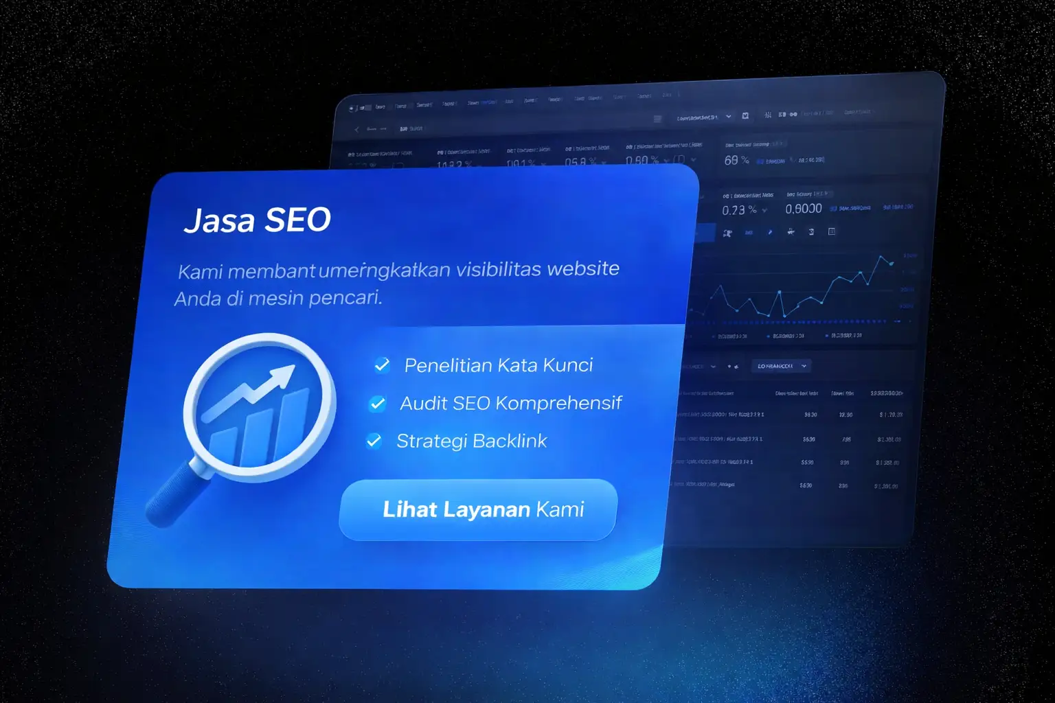 Solusi digital komprehensif: pembuatan website profesional, tingkatkan traffic & leads dengan strategi SEO dan Advertising yang efektif. Mulai tingkatkan bisnis Anda sekarang!