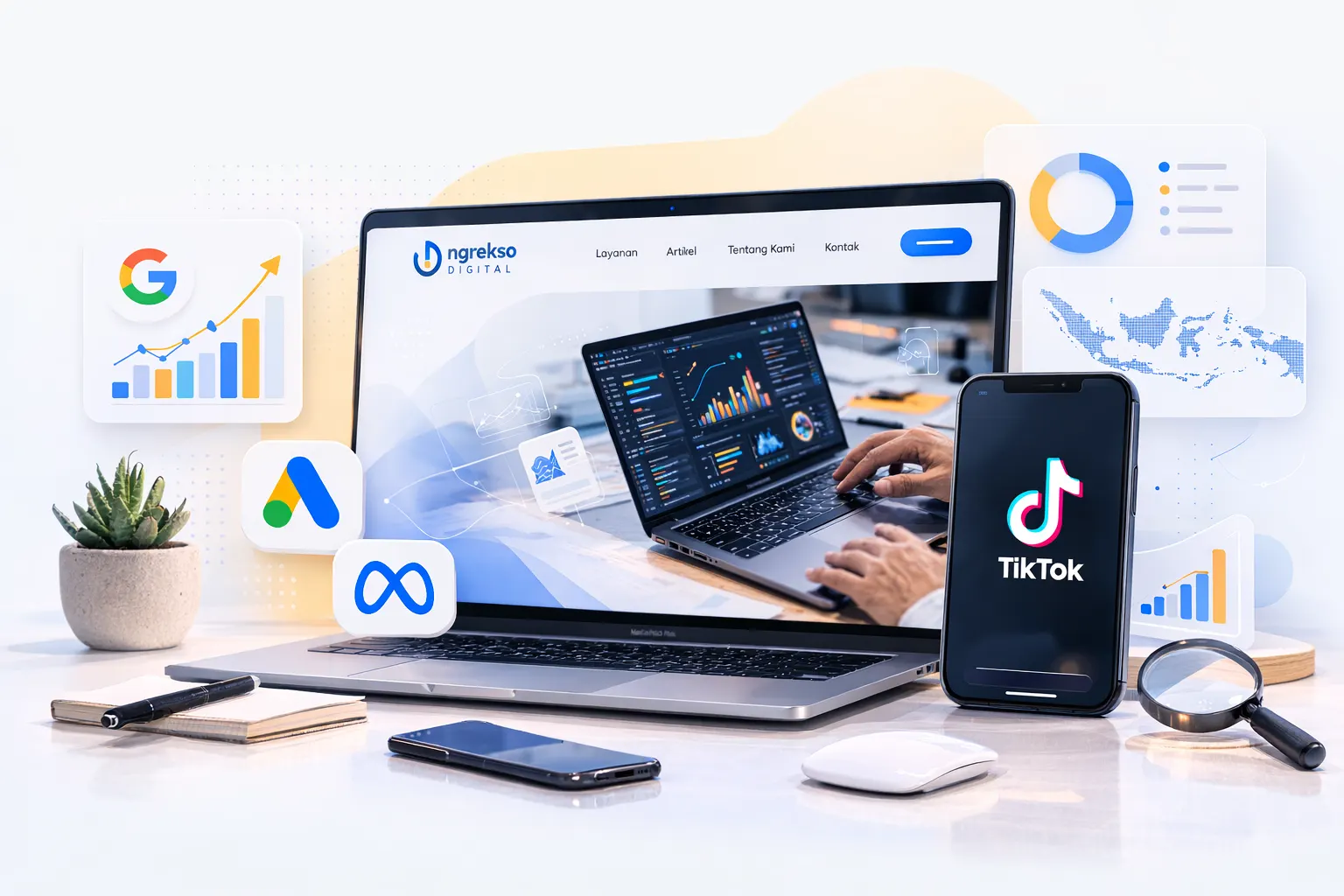 Kampanye iklan berbayar di Google, Meta, dan TikTok yang dioptimasi untuk ROI maksimal setiap rupiah yang Anda investasikan.